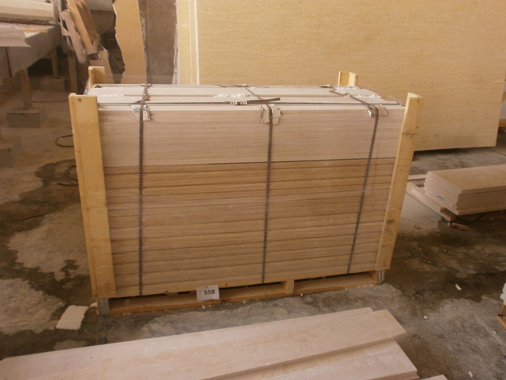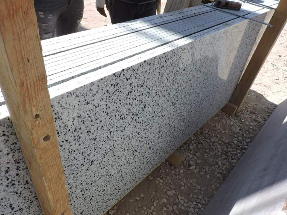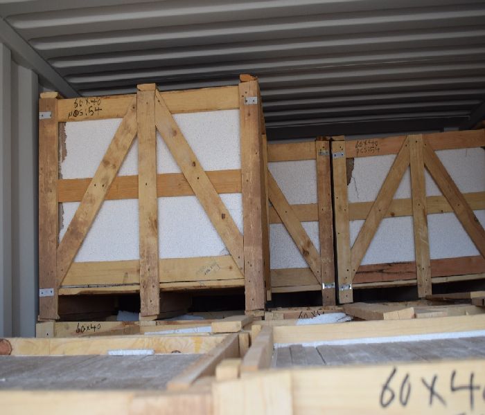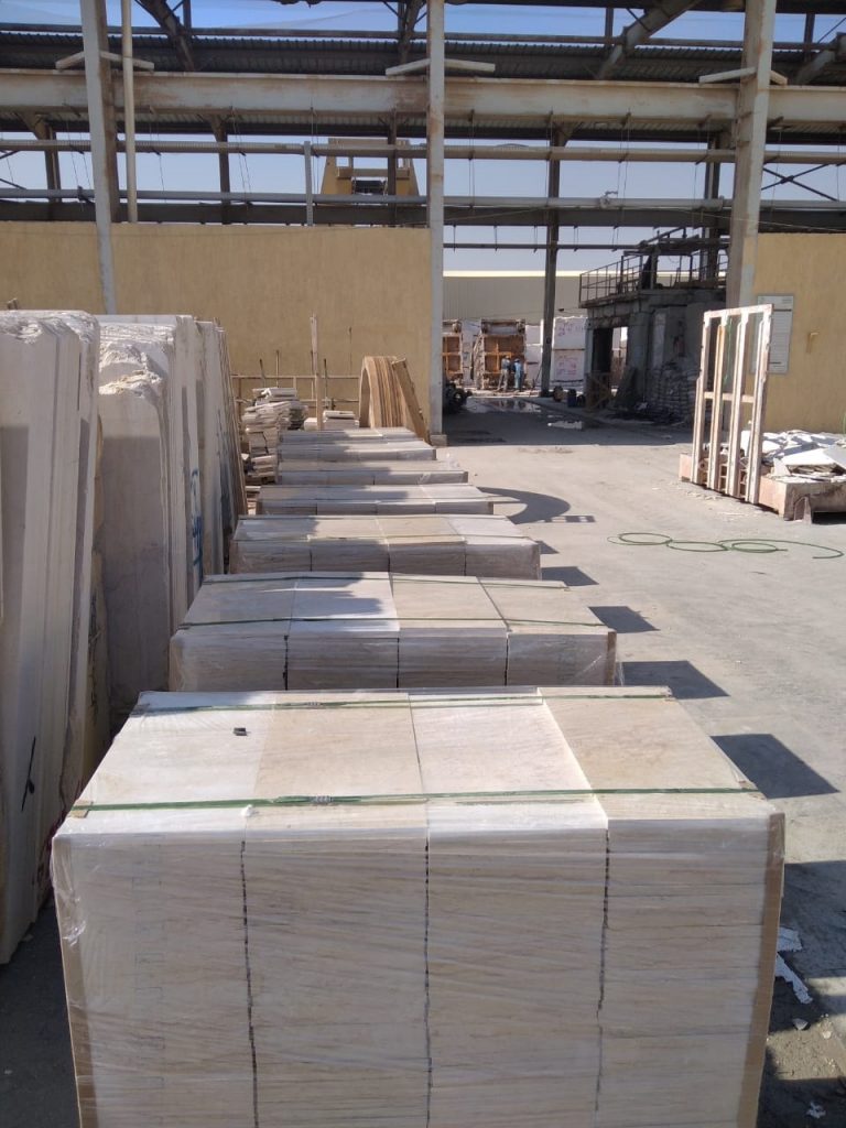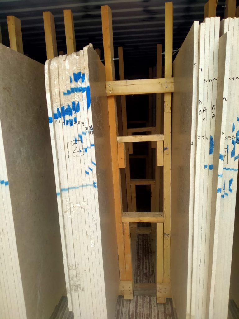 The slabs are gathered in groups each group contains form 8 to 15 slabs according to their thickness packed in wooded bundles & Loaded either in 20 feet box container or in open container. In case of polished slabs we put Plastic sheets between slabs to protect it against scratches., if the slabs are long in length so the container take only two groups one to the right and the other to the left, if the slabs are short in length so the container take four group of slabs two to the right and two to the left.