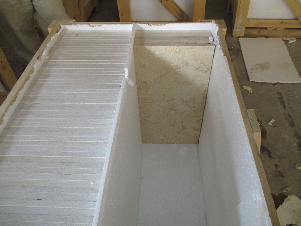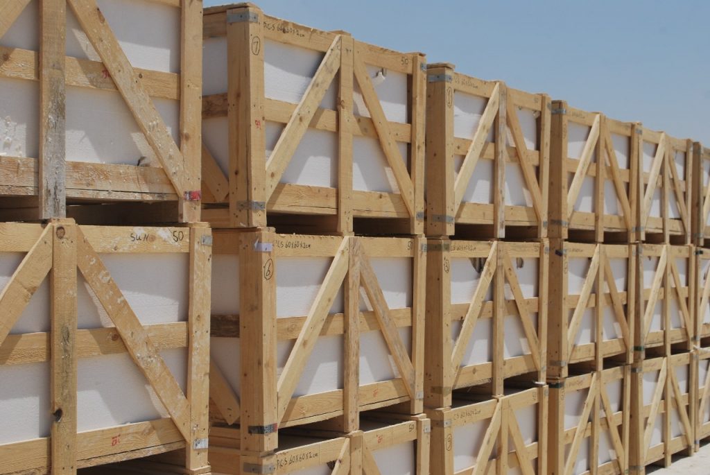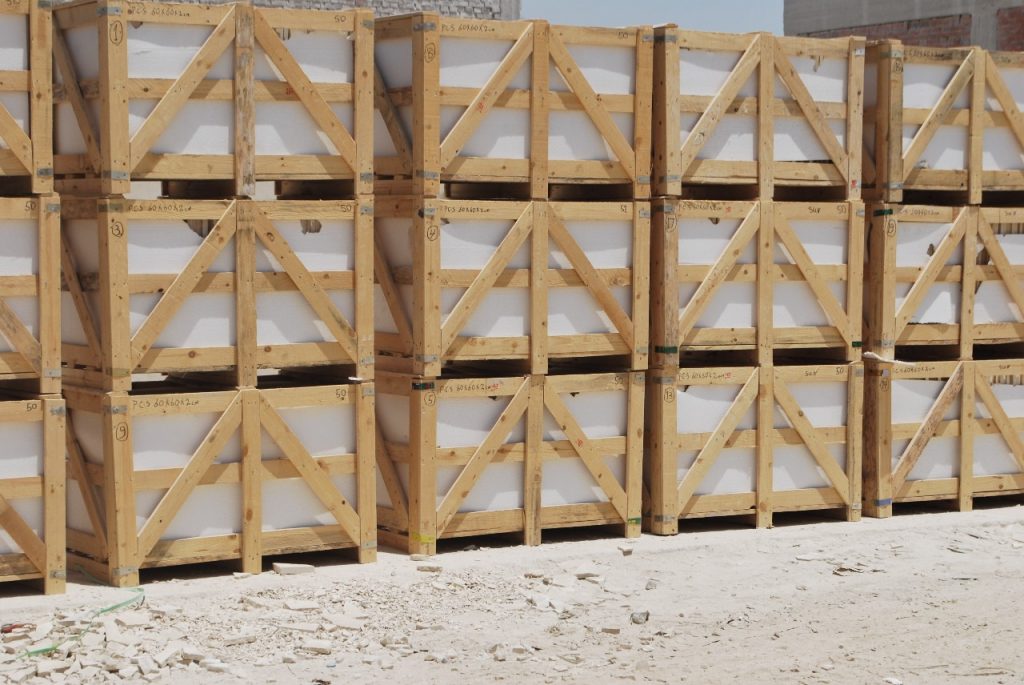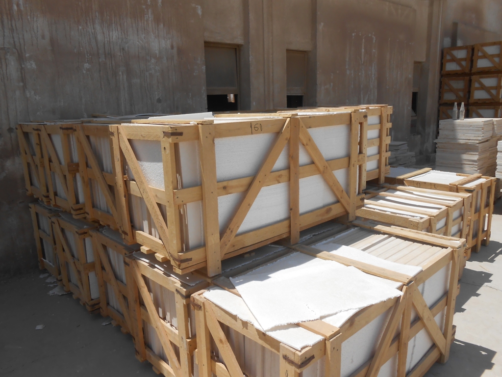 Tiles are packed after being highly selected according to the approved samples on wooden pallets surrounded by foam for better protection,and fasten with plastic belts with rubber pieces on the edges to avoid any damages all details of the pallet contents are mentioned in the label paper fixed on the lateral side of the pallet.